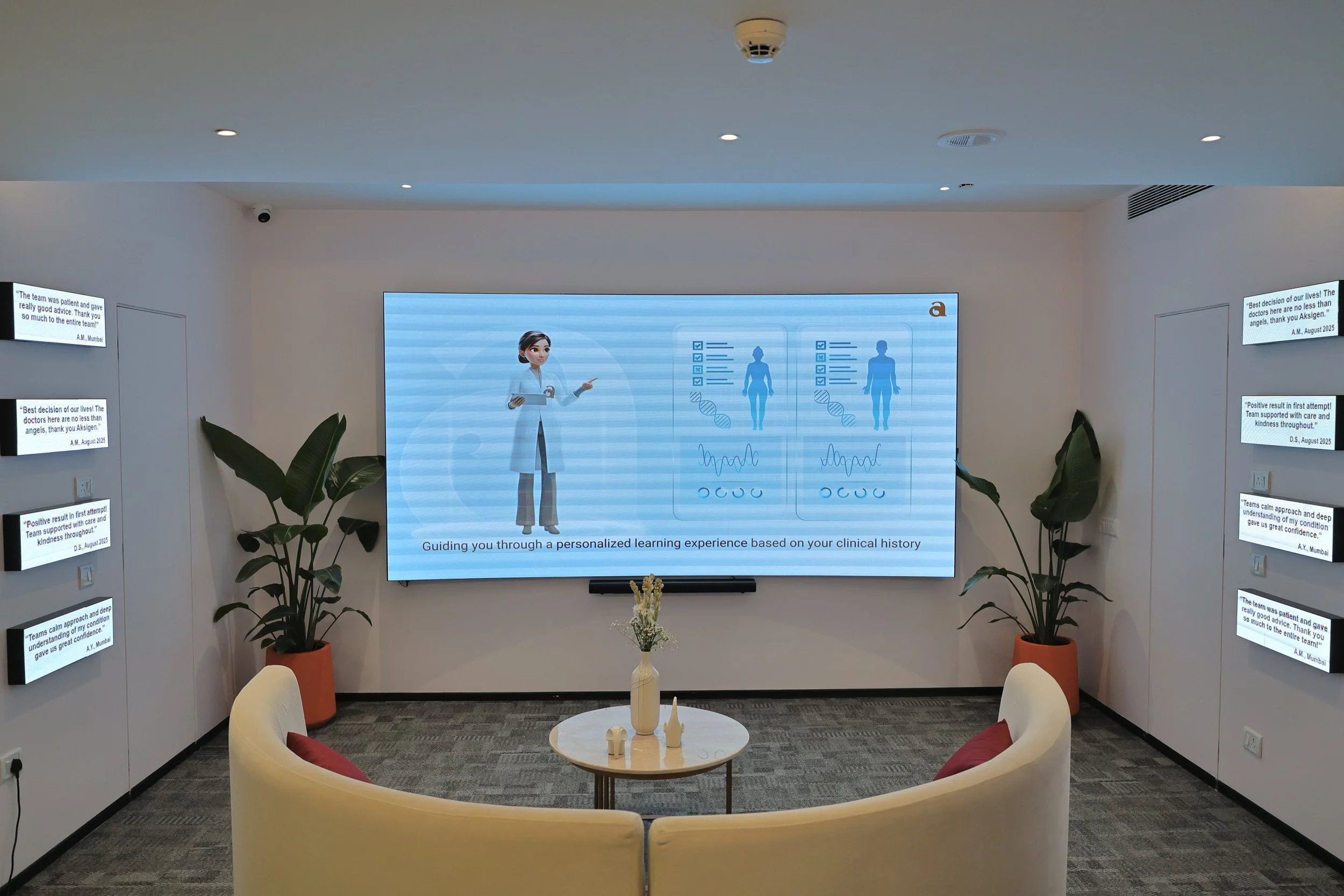The Knowledge Centre provides a guided walkthrough led by Aksigen’s expert team, combining immersive technology Rooted in Science with a warm, human-centric design. Through accurate, patient-appropriate explanations of reproductive science, the experience demystifies complex IVF concepts, addresses common fears and myths, and builds trust through transparent education and real-world patient journeys.
