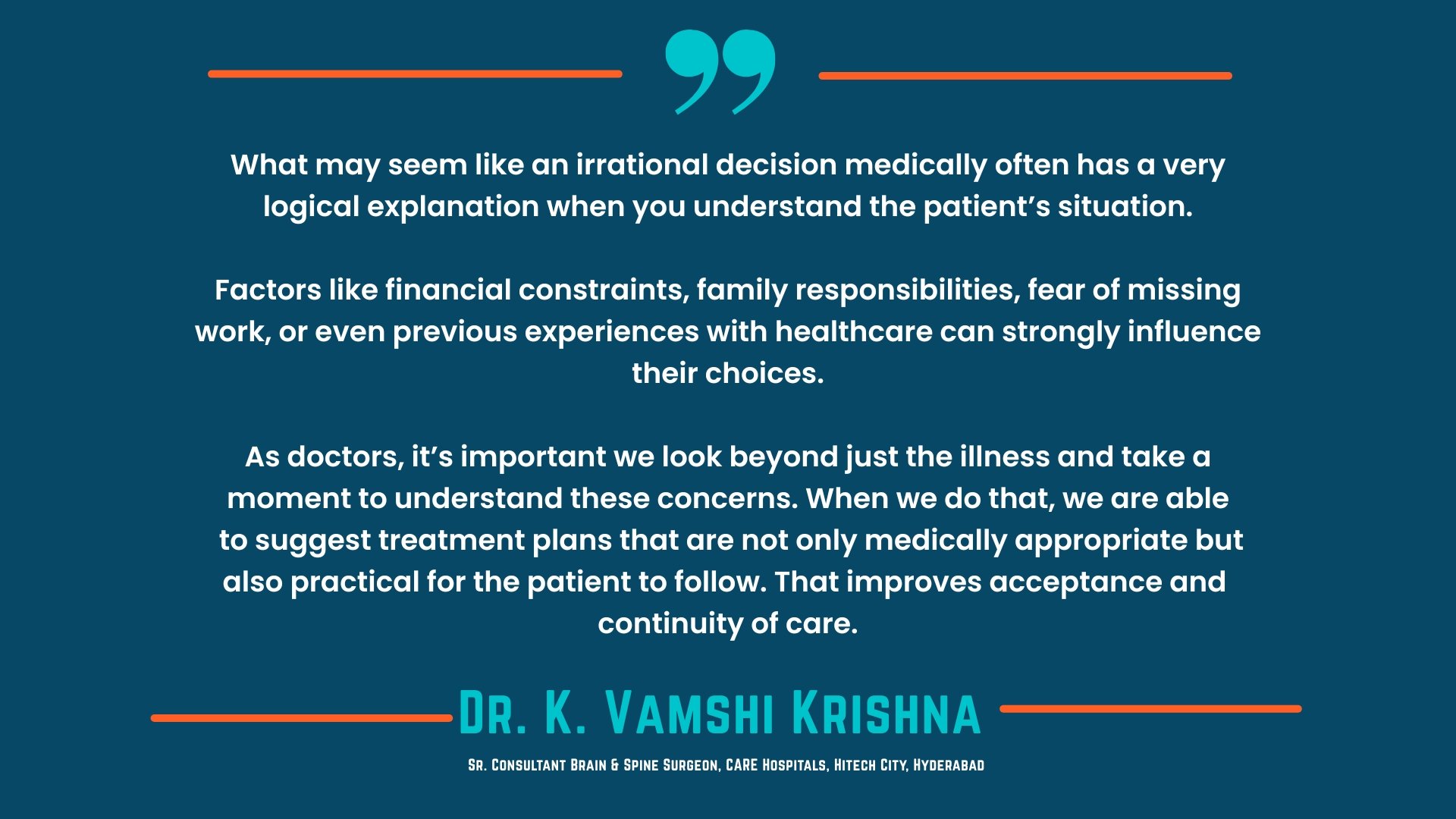 The episode altered her understanding of clinical authority. “I had been clinically right, but I had not brought her along with me. She needed to understand my reasoning, not just receive my conclusion. Confidence without communication is incomplete medicine. Competence opens the door; trust is what makes a patient walk through it and stay.”